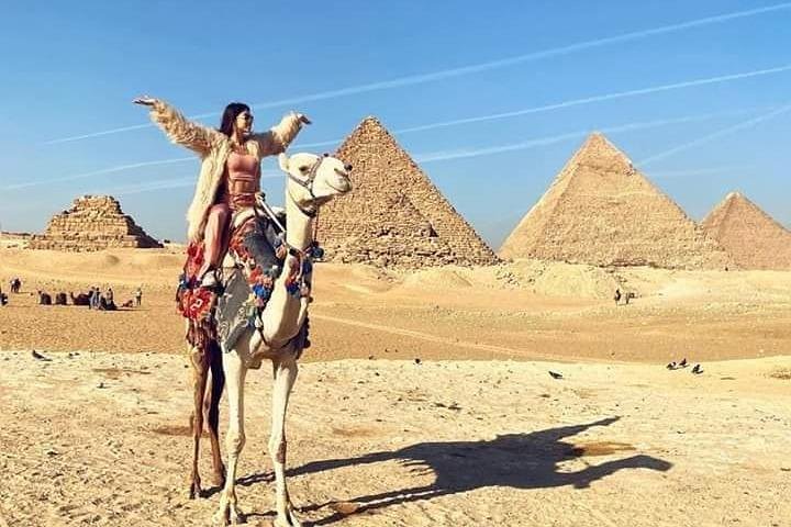 Your tour will begin with a pick-up from your hotel in Cairo or Giza. From there, you’ll be transferred to the Pyramids of Giza, where you’ll meet your expert camel guide & The Photographer .